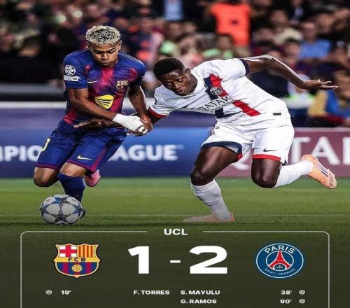 全場戰(zhàn)罷,巴薩主場1-2慘遭巴黎逆轉(zhuǎn),遇本賽季球隊首敗,各項賽事5連勝就此終結(jié)!