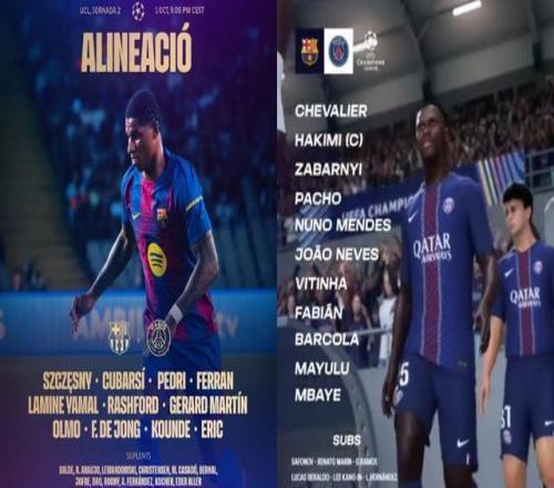 兩隊此戰(zhàn)均有所輪換,巴薩派上費(fèi)蘭-托雷斯單箭頭,身后是亞馬爾、奧爾莫和拉什福德。巴黎更是半主力陣容,巴爾科拉、馬尤盧和姆巴耶組成進(jìn)攻三叉戟,金球先生登貝萊未進(jìn)大名單。