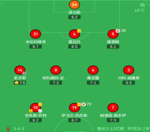 本場比賽諾丁漢森林排出了343陣型。吉布斯-懷特、伊戈爾-熱蘇斯和赫德森-奧多伊組成進攻三叉戟。恩多耶、安德森、桑加雷和內科-威廉斯4中場聯(lián)袂出擊。米倫科維奇、莫拉托和穆里略3后衛(wèi)首發(fā)出戰(zhàn)。澤爾斯擔任首發(fā)門將??死锼?伍德和多明格斯坐在替補席待命。