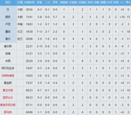 22年NBA總冠軍后衛(wèi)&新援普爾也完成了加盟鵜鶘的首秀,作為首發(fā)控衛(wèi)出戰(zhàn),約20分鐘里,投籃9中3,其中三分球只有6中1,罰球5中4獨攬11分4板4助1帽,然而送出4次助攻的同時出現(xiàn)3次失誤,正負值-3首發(fā)五虎最低。