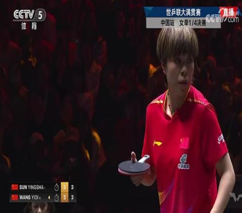 10月3日,WTT中國(guó)大滿貫女單1/4決賽,孫穎莎4-3(14-12、4-11、11-6、7-11、12-14、11-3、11-8)戰(zhàn)勝隊(duì)友王藝迪,晉級(jí)四強(qiáng)。孫穎莎半決賽的對(duì)手是陳幸同和朱雨玲之間的勝者。