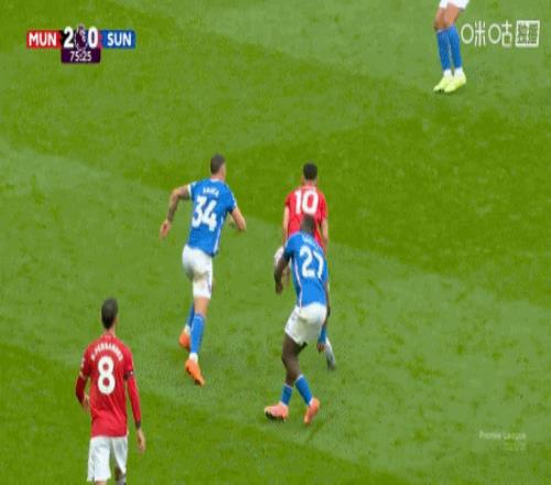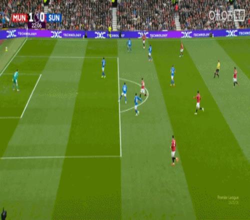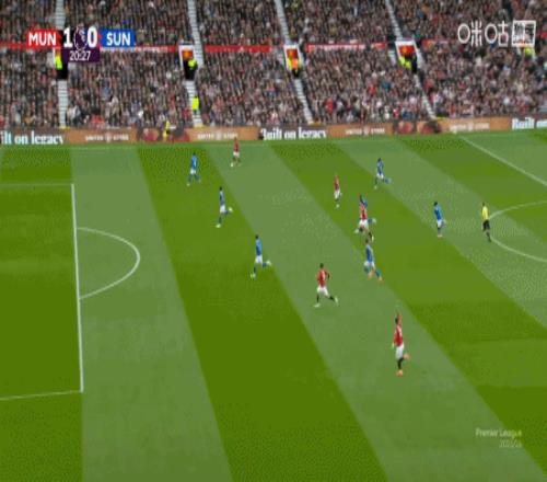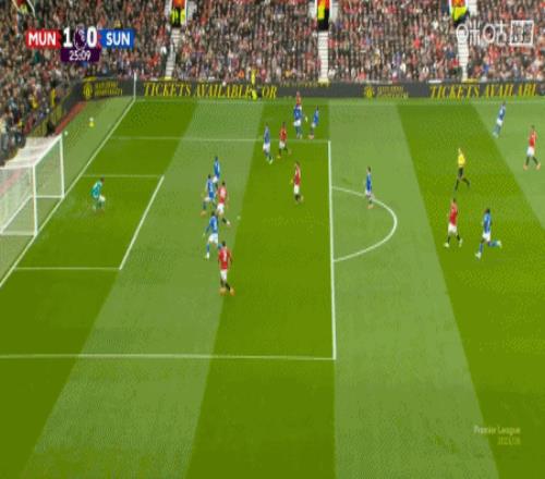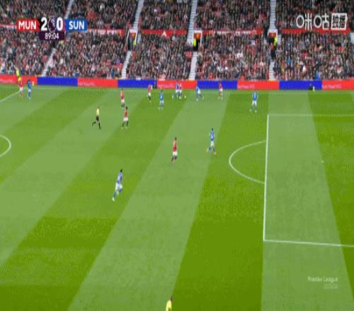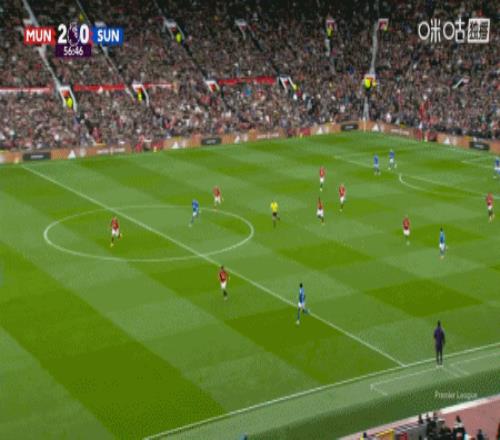 第8分鐘,姆伯莫助攻,芒特凌空打門直入死角,曼聯1-0領先桑德蘭!