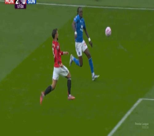 第57分鐘,曼聯門將拉門斯出擊與特拉奧雷相撞,后者被判罰假摔染黃