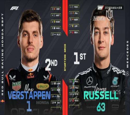 昨晚的排位賽無(wú)疑給全世界帶來(lái)了驚喜!拉塞爾獲得桿位,維斯塔潘緊隨其后同樣在頭排發(fā)車,皮亞斯特里第三位起步,而排在第四的是同樣來(lái)自梅奔車隊(duì)的“小kimi”安東內(nèi)利。而法拉利雙雄于第6和第7位起步,在他們身前是麥克拉倫的諾里斯。