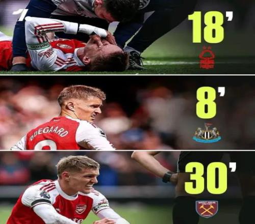 本輪與西漢姆聯(lián)的比賽,厄德高僅踢了30分鐘便因傷退場(chǎng)。賽后,阿森納官宣厄德高左膝內(nèi)側(cè)副韌帶受傷,回歸時(shí)間未定。過(guò)去一年,厄德高可謂是“傷痕累累”,本賽季尤甚。統(tǒng)計(jì)數(shù)據(jù)顯示:厄德高成為英超史上首位連續(xù)三場(chǎng)聯(lián)賽首發(fā)都在半場(chǎng)前因傷被換下的球員。