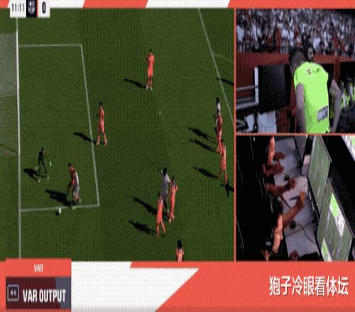第11分鐘,VAR介入,通過慢動(dòng)作可以看到,和阿勞霍對抗過后,伊薩克·羅梅羅在禁區(qū)內(nèi)倒地,裁判判罰點(diǎn)球。