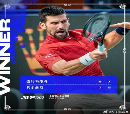 10月09日宣 ATP上海大師賽男單1/4決賽,38歲的德約科維奇對(duì)陣世界排名第44位的貝爾赫斯,最終德約以6-3、7-5擊敗對(duì)手,第10次打進(jìn)賽會(huì)四強(qiáng)、第80次闖進(jìn)大師賽男單四強(qiáng)。半決賽德約的對(duì)手將是資格賽黑馬瓦舍羅。