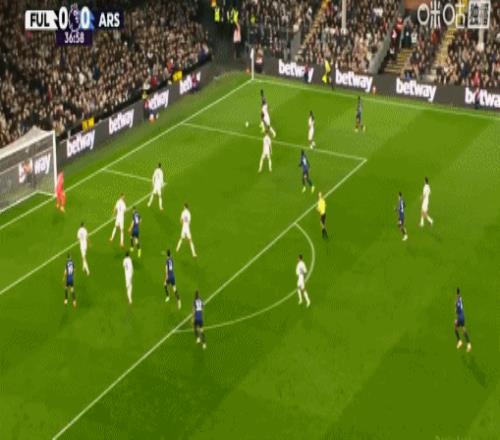 第49分鐘,薩卡突入禁區(qū)傳球制造混亂,球最后被解圍