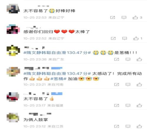 韓聰在賽后采訪中坦言,為回歸他嚴(yán)格節(jié)食減重,每天堅(jiān)持高強(qiáng)度訓(xùn)練,“作為中國(guó)運(yùn)動(dòng)員,我們有責(zé)任和使命為祖國(guó)繼續(xù)拼搏”。隋文靜則笑稱控制情緒是新課題:“太久沒見這么多觀眾,興奮到連站位都記錯(cuò)了,接下來(lái)要慢慢適應(yīng)比賽節(jié)奏”。兩人的復(fù)出獲得全網(wǎng)盛贊,“偉大無(wú)須多言”“感謝回歸”等評(píng)論刷屏,相關(guān)話題強(qiáng)勢(shì)登頂微博體育熱搜第一。