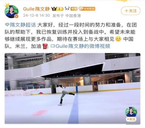 2024年12月,隋文靜率先通過(guò)微博發(fā)聲“經(jīng)過(guò)一段時(shí)間的努力和準(zhǔn)備,已恢復(fù)訓(xùn)練投入備戰(zhàn),中國(guó)隊(duì),米蘭,加油”,正式宣告回歸,視頻中她跳躍穩(wěn)健、滑行流暢,狀態(tài)極佳。復(fù)出初期,隋文靜曾與多位男選手搭檔訓(xùn)練,磨合技術(shù)銜接。