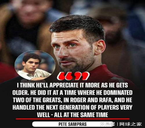 作為上一代的球王,桑普拉斯公開稱贊德約科維奇“配得上史上最偉大選手”稱號,其贊美不僅只是針對德約科維奇24個大滿貫冠軍的認可,更是對他在不同時代保持統(tǒng)治力的全面肯定。