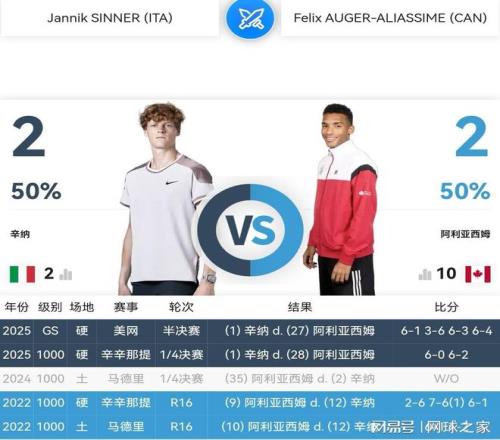因此,職業(yè)生涯至今四次交鋒、平分秋色的兩名00后選手辛納和阿利亞西姆,今晚必定全力以赴,使出渾身解數(shù),為奪取巴黎大師賽冠軍而激烈角逐、頑強拼搏。