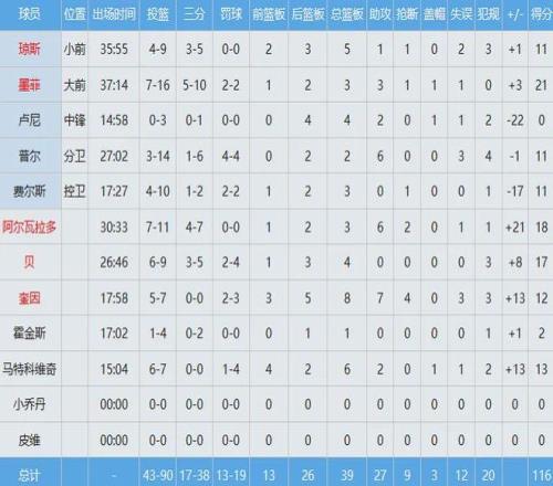 黃蜂全隊(duì)數(shù)據(jù)如下: