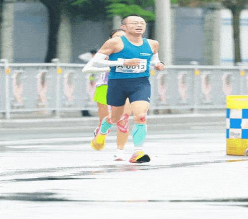 “我起跑過2公里后,新宇給我加完油,因?yàn)槲乙s飛北京的航班,他趕回酒店,把我倆行李收拾好拿到起點(diǎn),放在存包處。然后一直站在雨里等著我沖線?!敝荜恢溃掠钭鳛椤百t內(nèi)助”,一直在為自己付出。