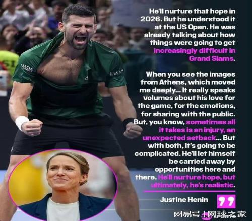 對此,前網(wǎng)球選手、七屆大滿貫冠軍得主海寧對德約科維奇的處境有著敏銳的觀察:“他會在2026賽季繼續(xù)保持這種希望,但他在今年美網(wǎng)已經(jīng)意識到這點,當(dāng)時他開始談?wù)撢A得大滿貫會越來越困難。”