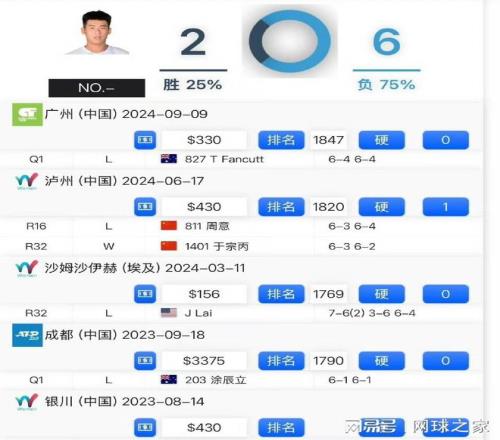 另一名網(wǎng)球選手——23歲的陸鵬宇則因涉嫌違反《網(wǎng)球反腐敗計(jì)劃》(TACP)同樣被嚴(yán)肅處罰。他在今年廣州挑戰(zhàn)賽資格賽中打出了引人疑慮的懸殊比分——首盤僅得7分、次盤僅得3分,最終“雙蛋”告負(fù)。