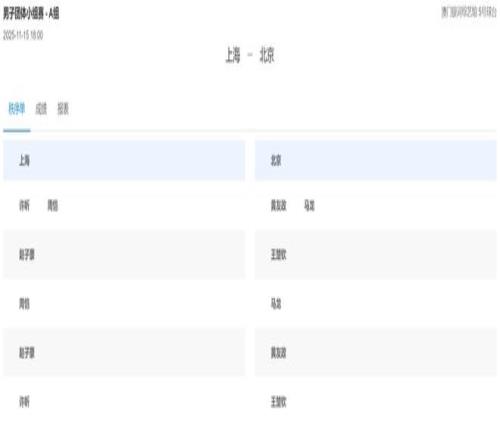 11月15日,全運(yùn)會(huì)男子團(tuán)體小組賽上海隊(duì)與北京隊(duì)的對(duì)陣表已更新。由于上海隊(duì)并未派出樊振東,今日18時(shí)開(kāi)始的對(duì)決,將不會(huì)出現(xiàn)樊振東對(duì)王楚欽的比賽。